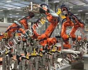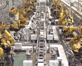 F45&F49&F52 機(jī)蓋線(xiàn),節(jié)拍60S,共3個(gè)車(chē)型,28臺(tái)機(jī)器人,其中七軸9臺(tái),共4個(gè)PLC。